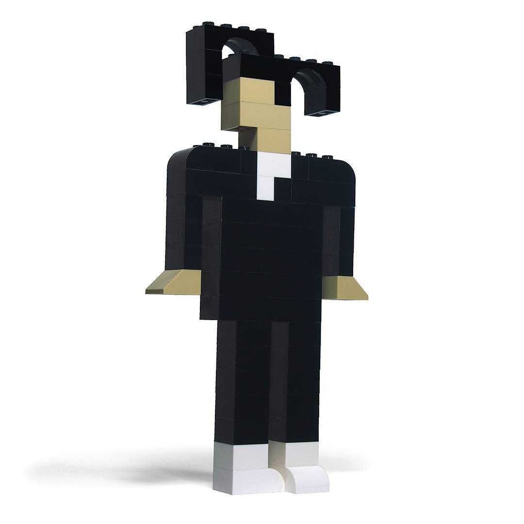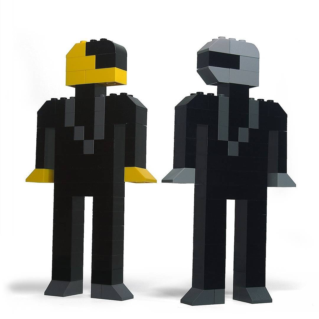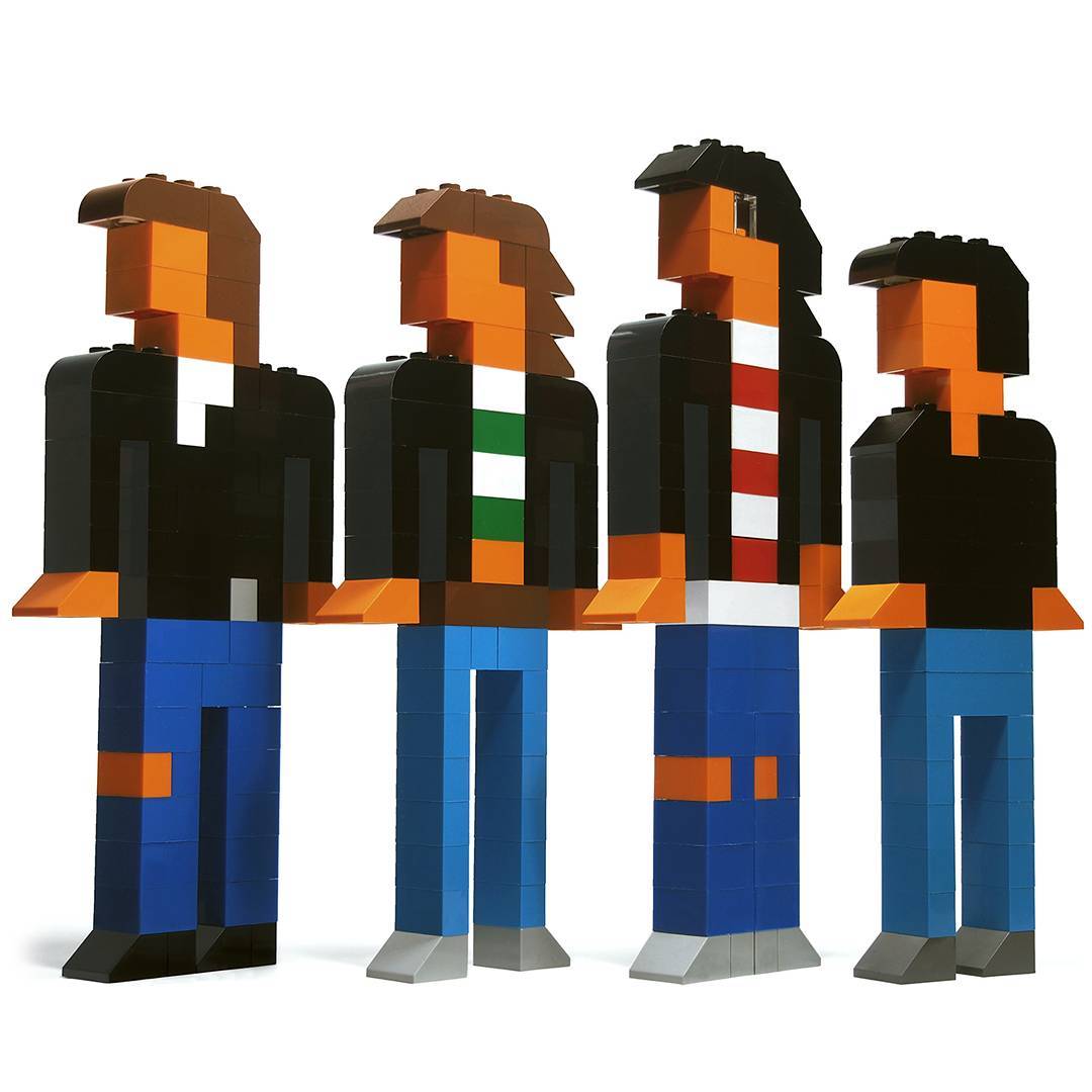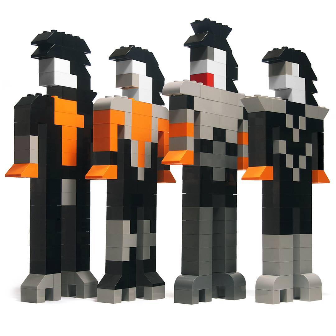 Figures of pop and rock greatest artists and bands built with toy bricks.