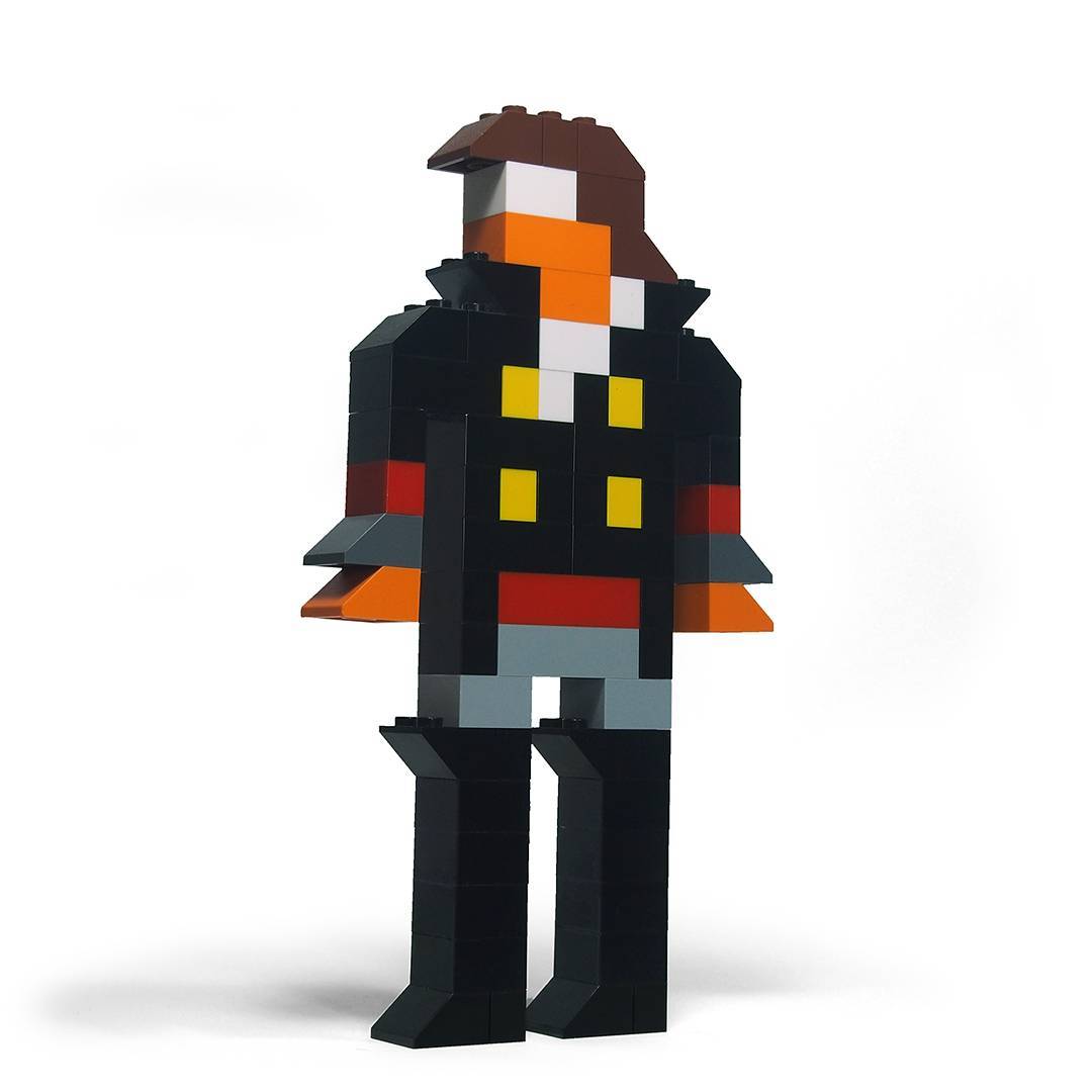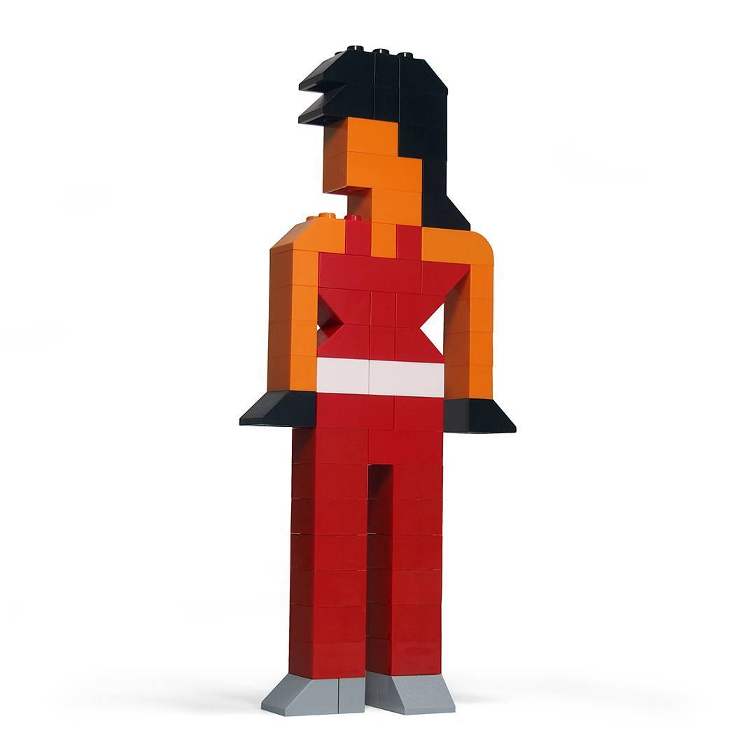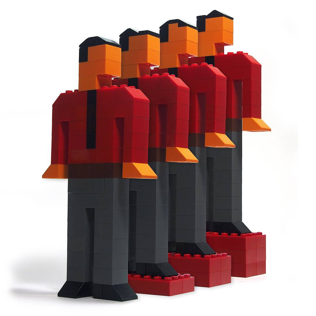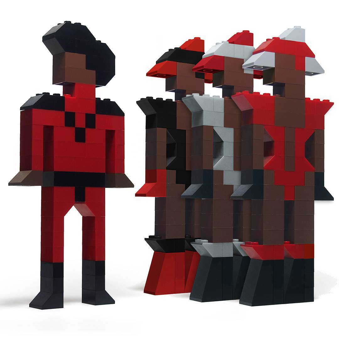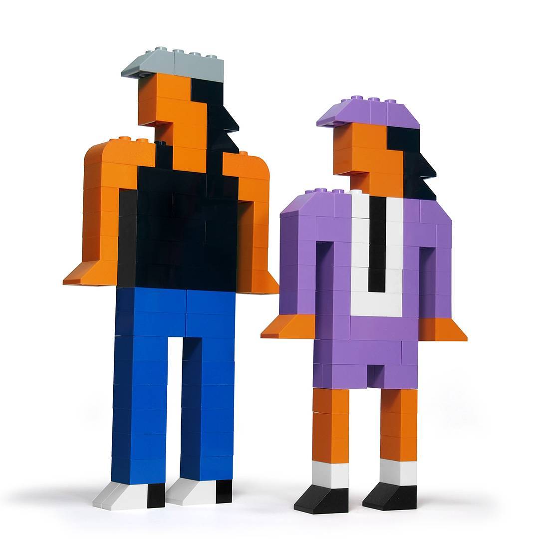 Figures of pop and rock greatest artists and bands built with toy bricks.