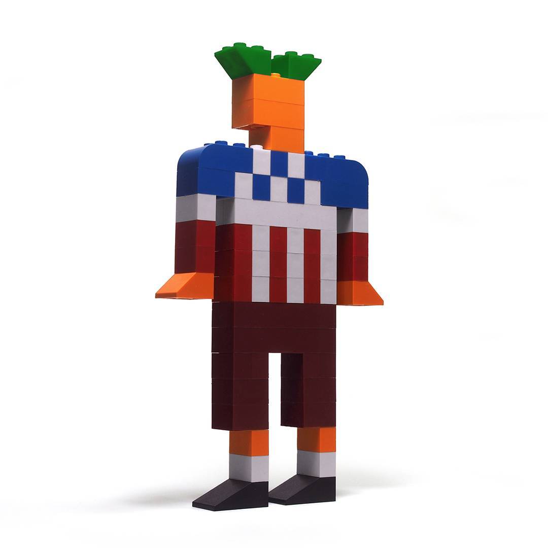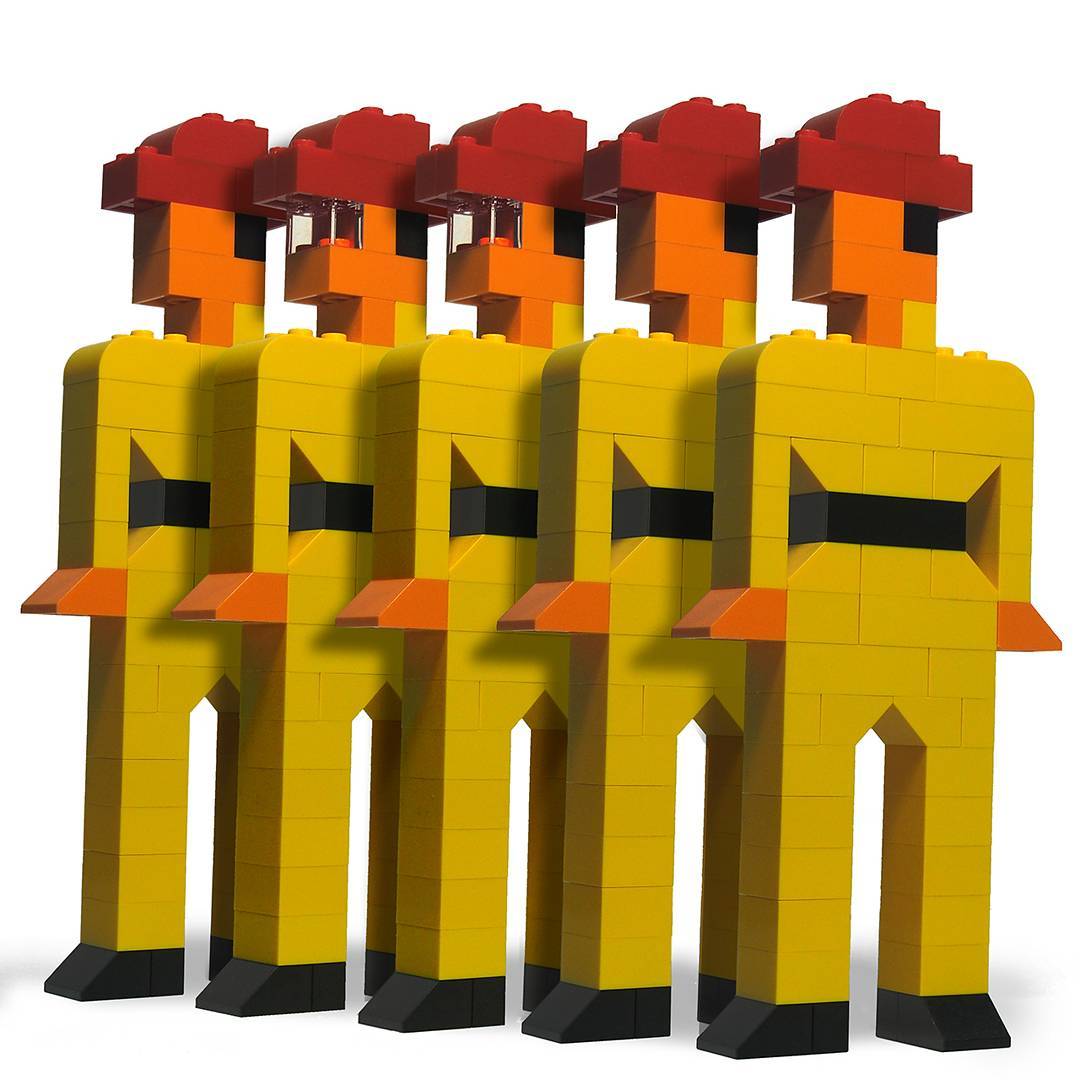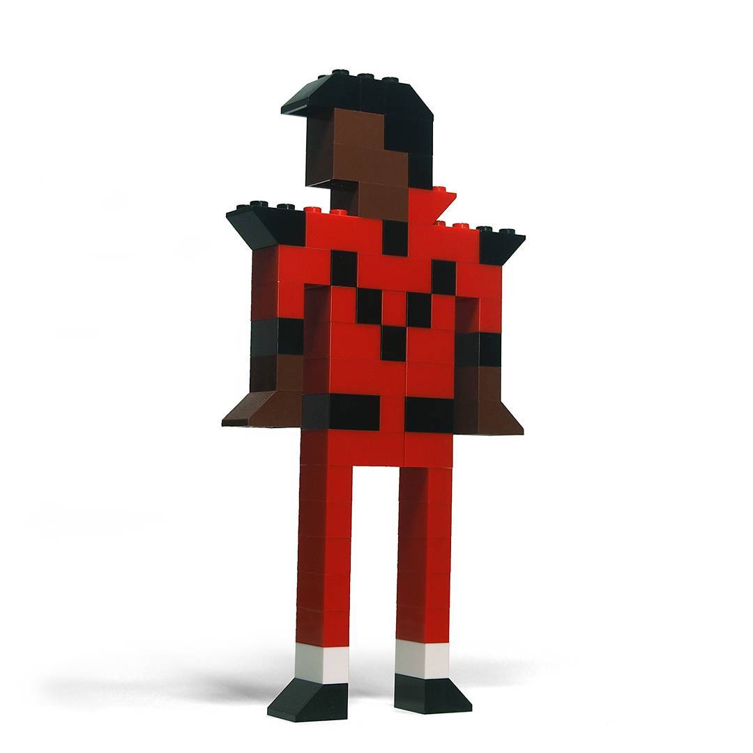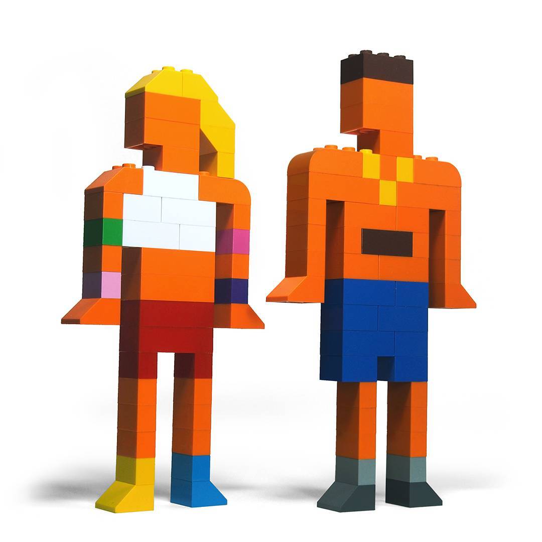 Figures of pop and rock greatest artists and bands built with toy bricks.